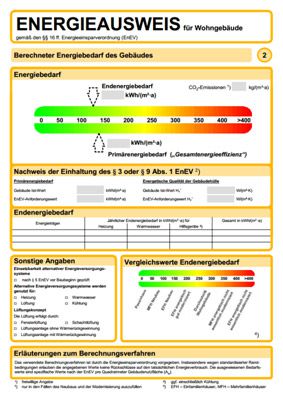 Möchte man ein Gebäude nach Inkrafttreten der EnEV-Regelung vermieten oder verkaufen, so muss dem Interessenten ein Energieausweis vorgelegt und beim Vertragsabschluss übergeben werden. Neben den bisherigen Exemplaren wird dieses Jahr ebenfalls eine neue Variante eingeführt, die neben der bekannten Grün-bis-Rot-Skala für die Energiekennwerte, zusätzlich neue Effizienzklassen beinhaltet. Wie bei Kühlschränken oder Wäschetrocknern reicht die Skala hier von A+ (geringer Energieverbrauch) bis H (hoher Verbrauch).